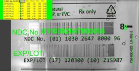 OCV inspection of over 360 characters text on IV Bag with fully filled solution, within 330 mili seconds. This first of a kind solution utilizes the theory of probability to properly inspect text covered with fluid bubbles.